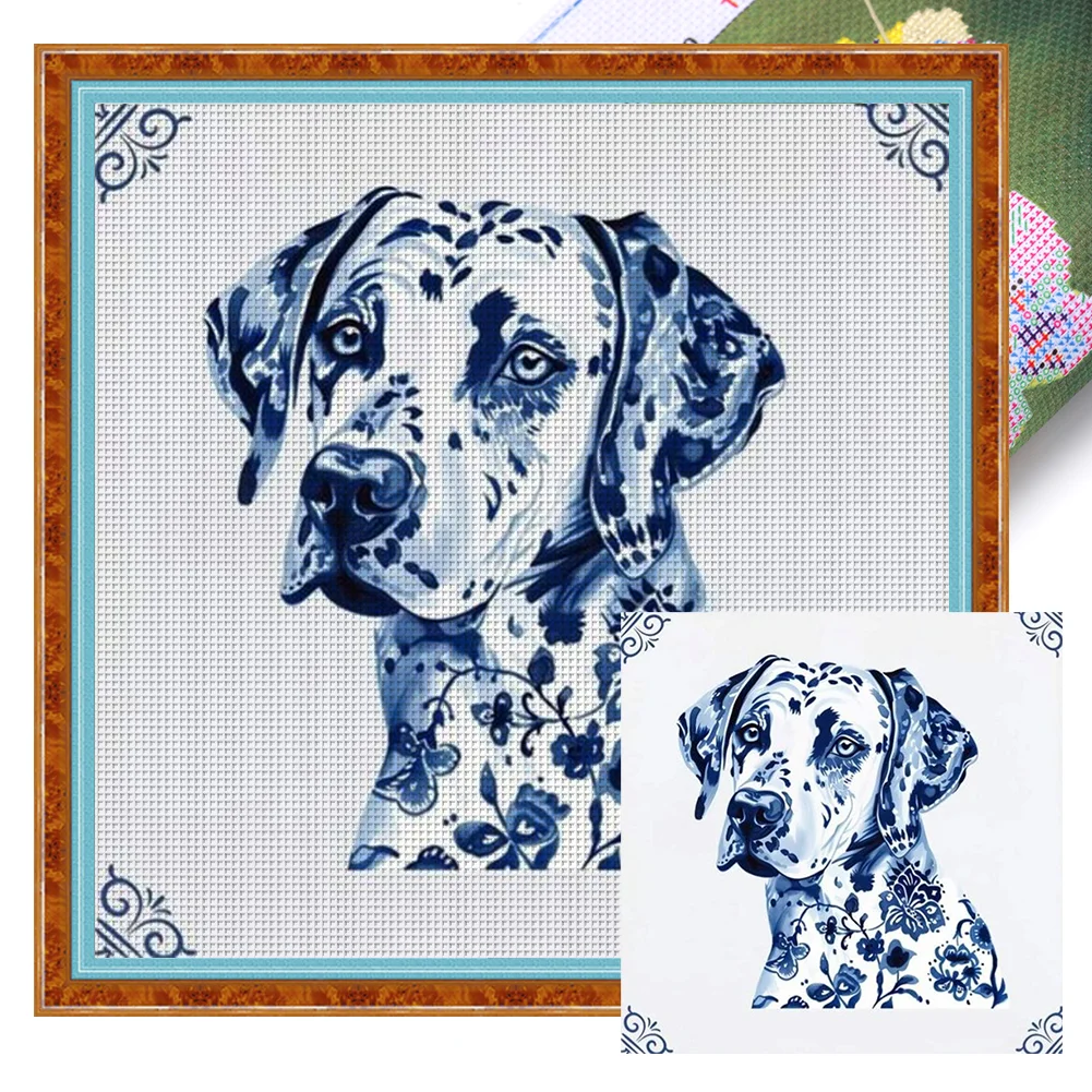 Style - Blue And White Porcelain Dog-11CT Stamped Cross Stitch 40*40cm