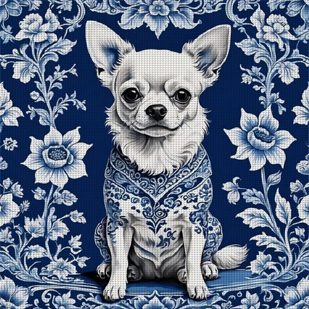 Blue And White Porcelain-Chihuahua-11CT Stamped Cross Stitch 40*40cm/15.75*15.75in