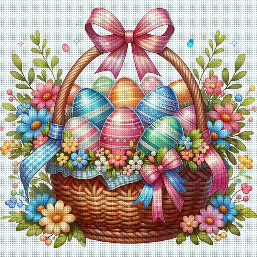 Easter Eggs In Flower Basket-14CT Stamped Cross Stitch 40*40cm/15.75*15.75in