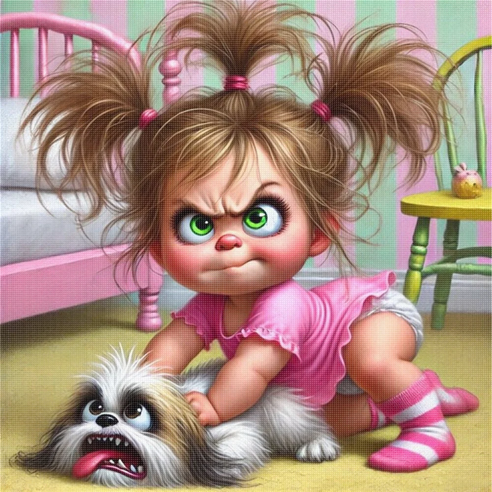Girl With Puppy-11CT Stamped Cross Stitch 40*40cm/15.75*15.75in