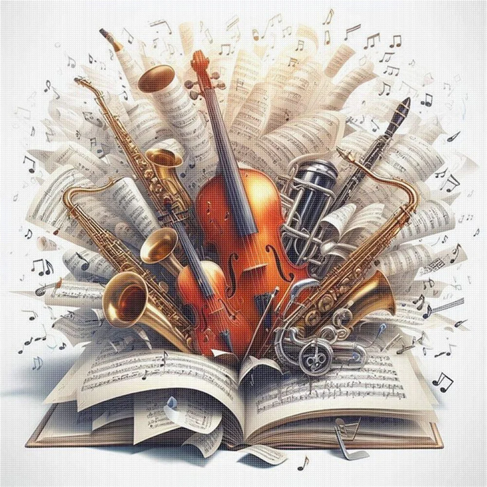 Sheet Music And Instruments-11CT Stamped Cross Stitch 50*50cm/19.69*19.69in