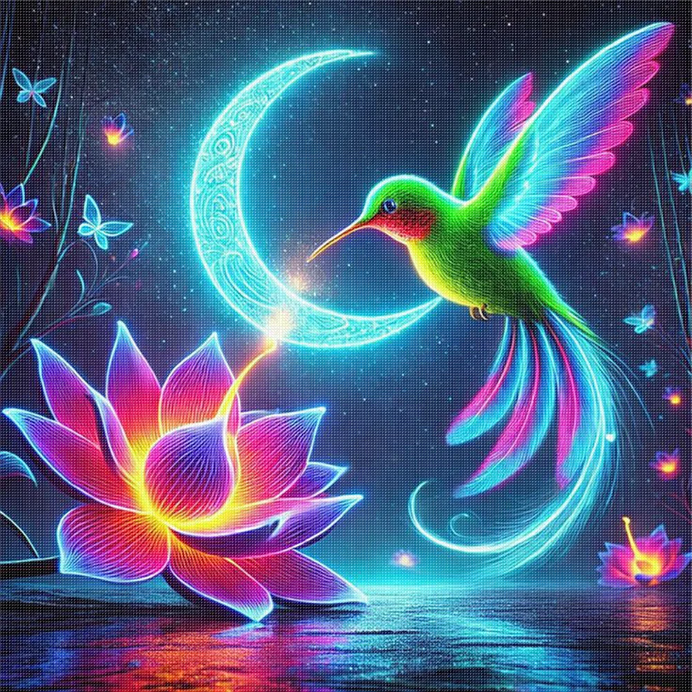 Luminous Lotus Hummingbird-11CT Stamped Cross Stitch 40*40cm/15.75*15.75in