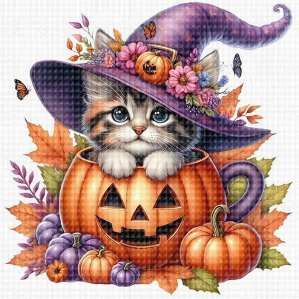 Pumpkin Cat-11CT Stamped Cross Stitch 40*40cm/15.75*15.75in